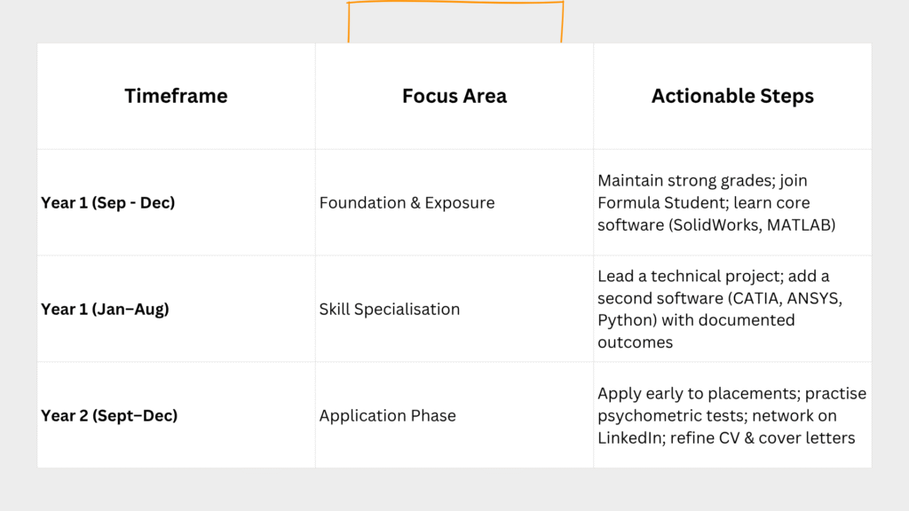 Securing an engineering placement with a Formula 1 team is one of the most competitive challenges in the engineering world. It requires more than top grades; it demands proven technical ability, project leadership, and strategic preparation. This guide outlines a four-pillar strategy to help university students build a credible, competitive application.